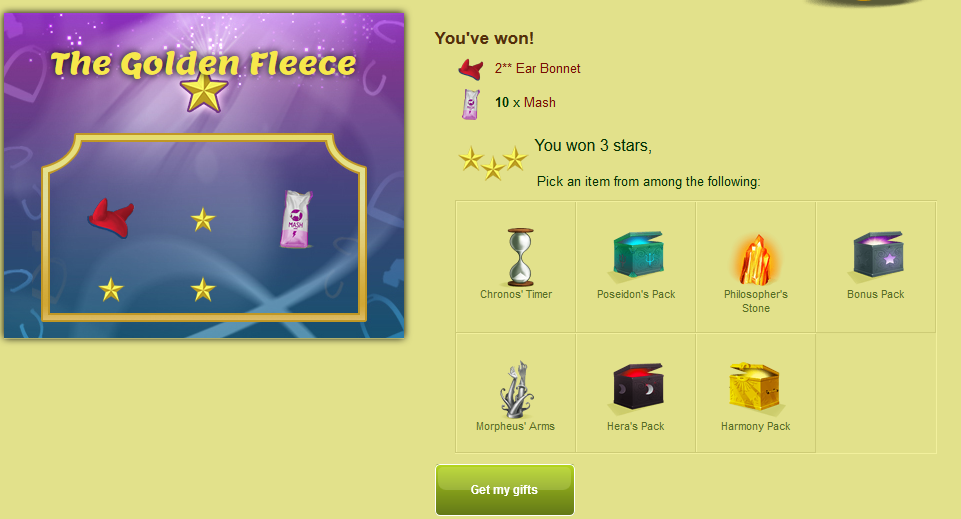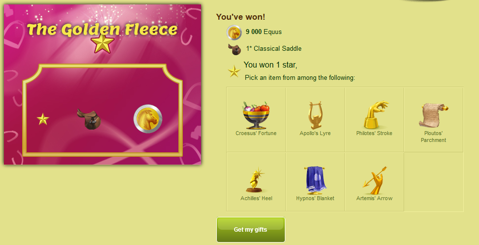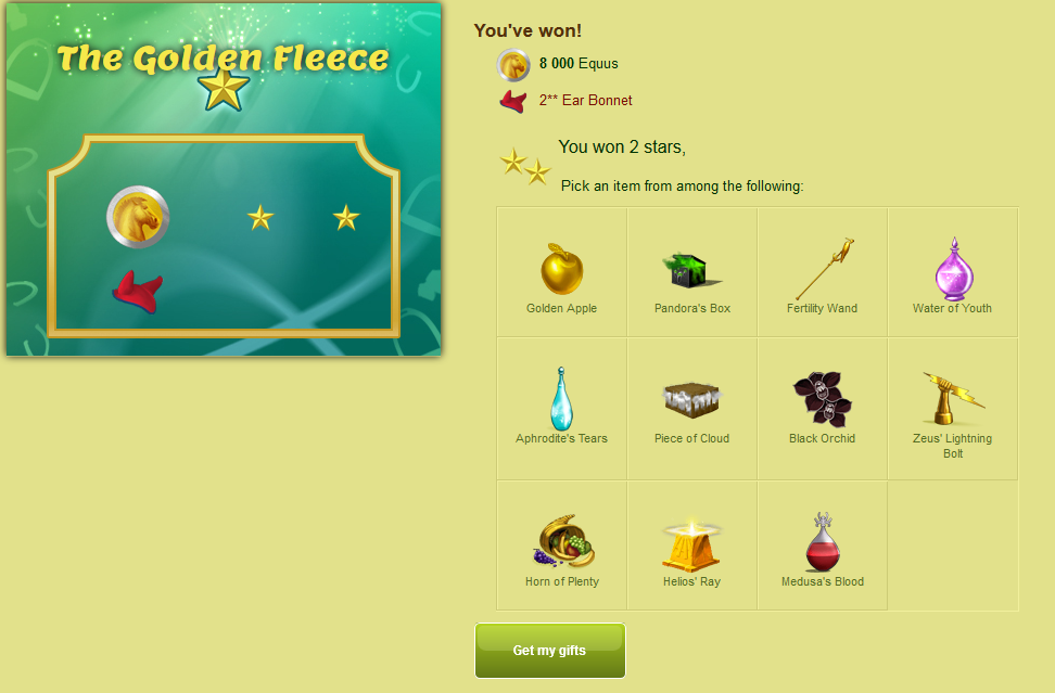 Kolejną gratką jest boski koń Lato dostępny do wygrania w takiej "podróbce" Roga obfitości o nazwie : Złote Runo.